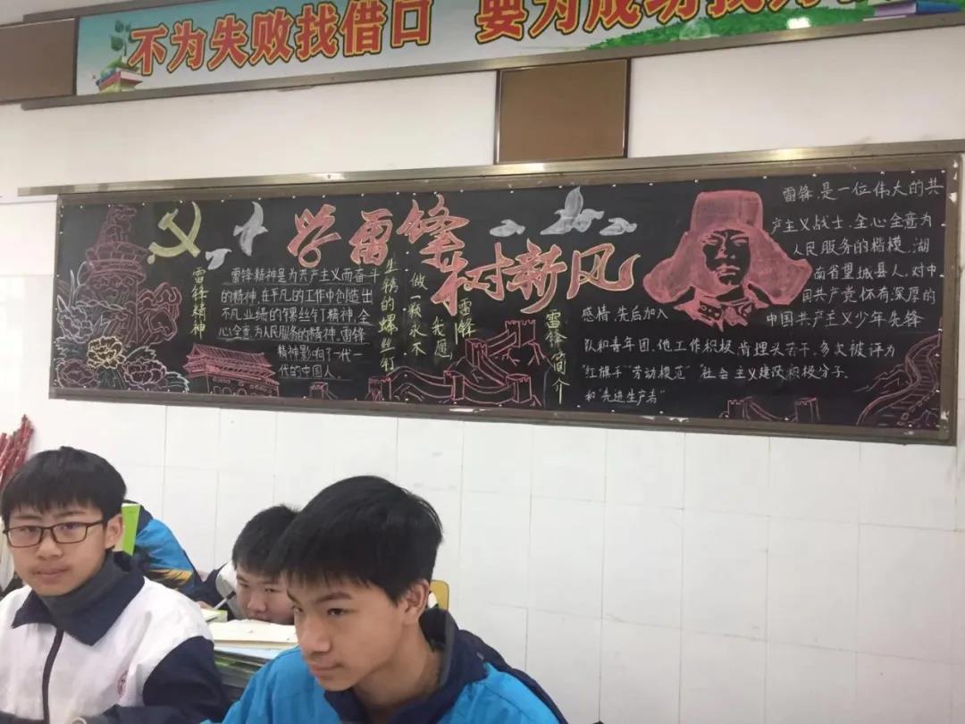活動中,各班積極參與,精心設(shè)計(jì)。在班主任和老師的指導(dǎo)下,各班緊緊圍繞主題,用靈動的畫筆創(chuàng)作出了一幅幅主題鮮明、色彩鮮艷、版面整潔、內(nèi)容豐富的黑板報(bào)。同學(xué)們充分利用黑板這塊宣傳陣地,對雷峰的生平事跡進(jìn)行全方位報(bào)道,歌頌雷鋒“全心全意為人民服務(wù)”的高尚品質(zhì)。