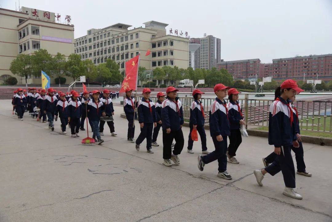 全體大隊(duì)部學(xué)生干部在操場集合,學(xué)生處譚主任對小志愿者們進(jìn)行相關(guān)德育及安全教育,囑咐同學(xué)們在活動(dòng)過程中注意安全,一切行動(dòng)聽指揮。