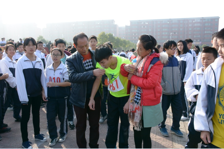 班主任和家長共同扶起比賽中體力透支的學生運動員
